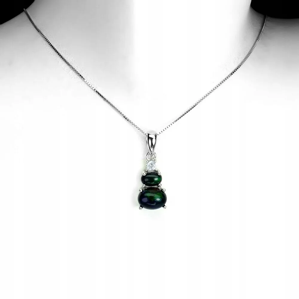 Srebrny naszyjnik natural czarne opale biały topaz