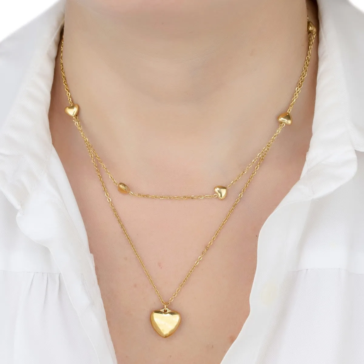 Naszyjnik PODWÓJNY serce STAL SZLACHETNA POZŁACANA