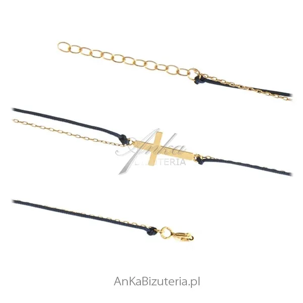 Bransoletka srebrna pozłacana na granatowym łańcuszku