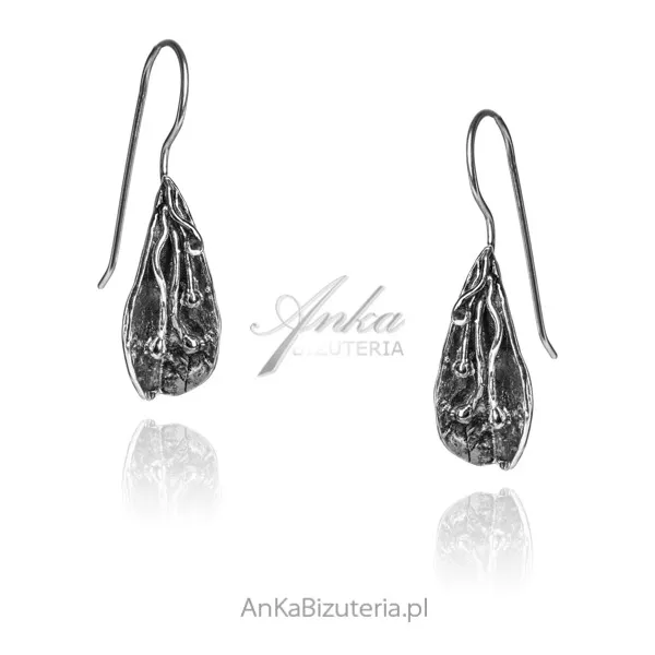 Kolczyki srebrne oksydowane krople w listku