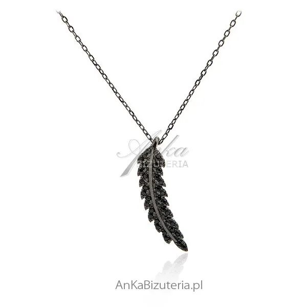 Naszyjnik srebrny z cyrkoniami -listek - pokryty rutenem
