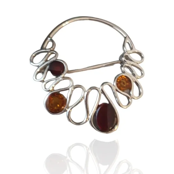 Broszko wisior z ręcznie rzeźbionym bursztynem w srebrze