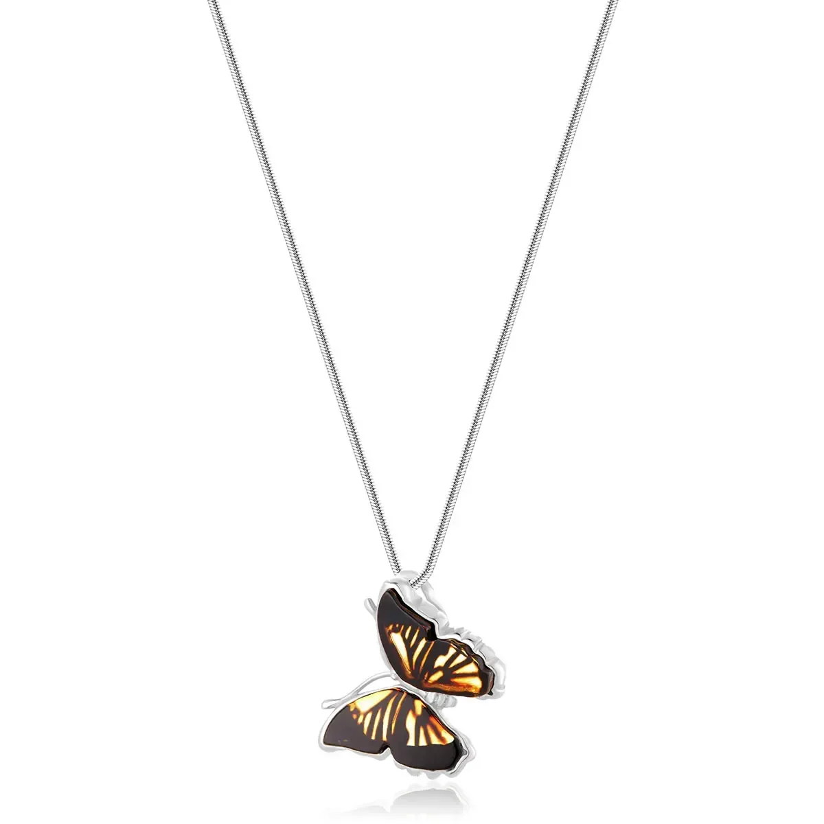 Zawieszka srebrna motyl z bursztynem mini Butterfly Touch