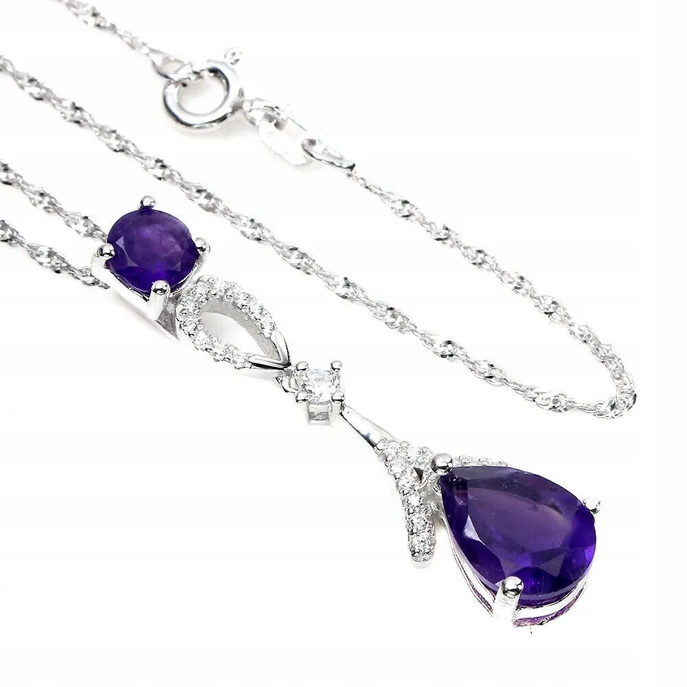 Srebrny naszyjnik naturalne ametysty cyrkonie 7