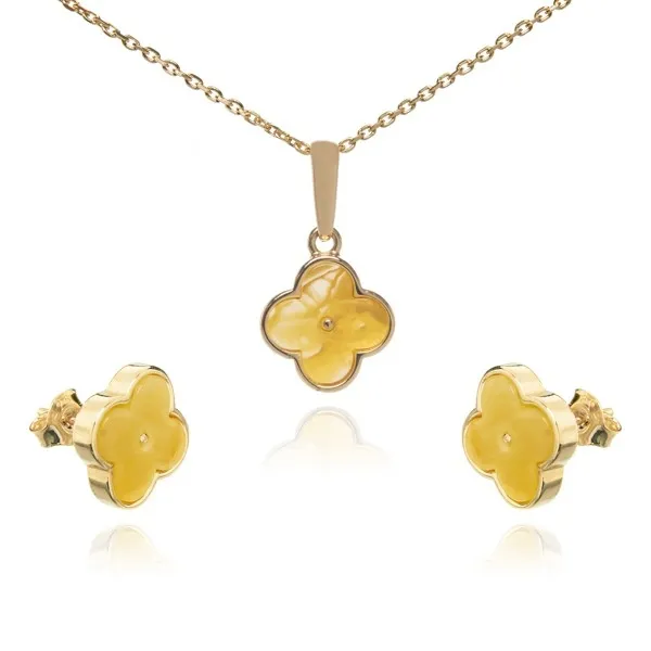 Biżuteria srebrna pozłacana komplet z żółtym bursztynem