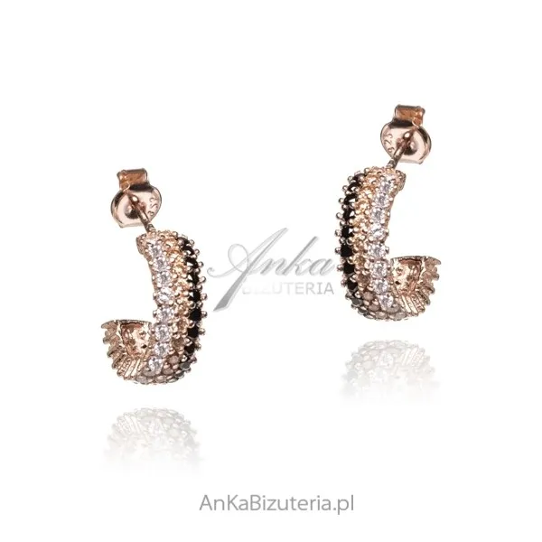 Kolczyki srebrne pozłacane różowym złotem z cyrkoniami