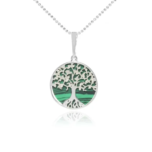 Zawieszka srebrna z zielonym malachitem drzewko szczęścia