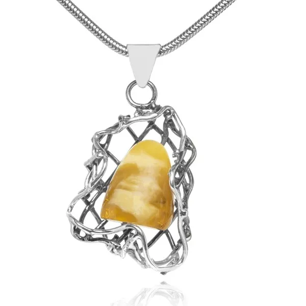 Biżuteria srebrna artystyczna - duży wisior srebrny z bursztynem