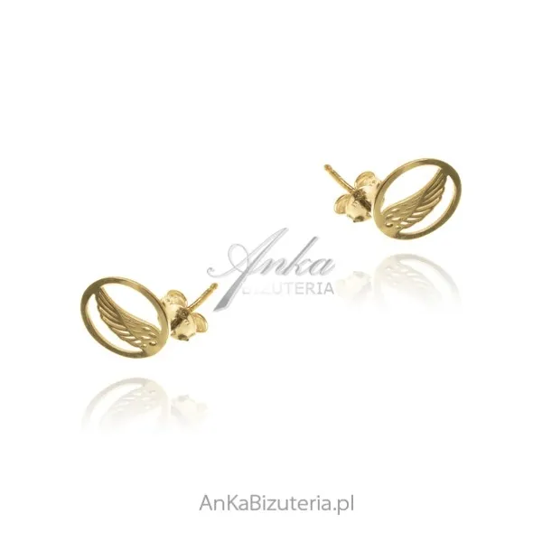 Kolczyki srebrne pozłacane skrzydełka w kółeczku