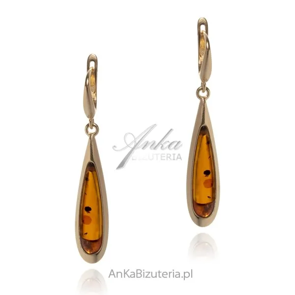 Kolczyki srebrne pozłacane z koniakowym bursztynem