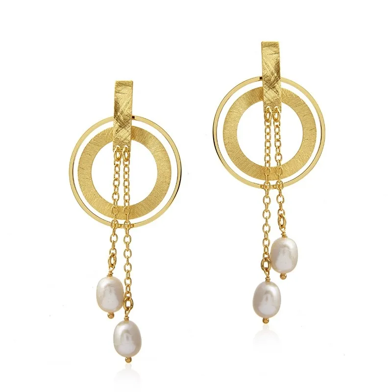 Kolczyki srebrne pozłacane satynowane z białą perełką - solarea