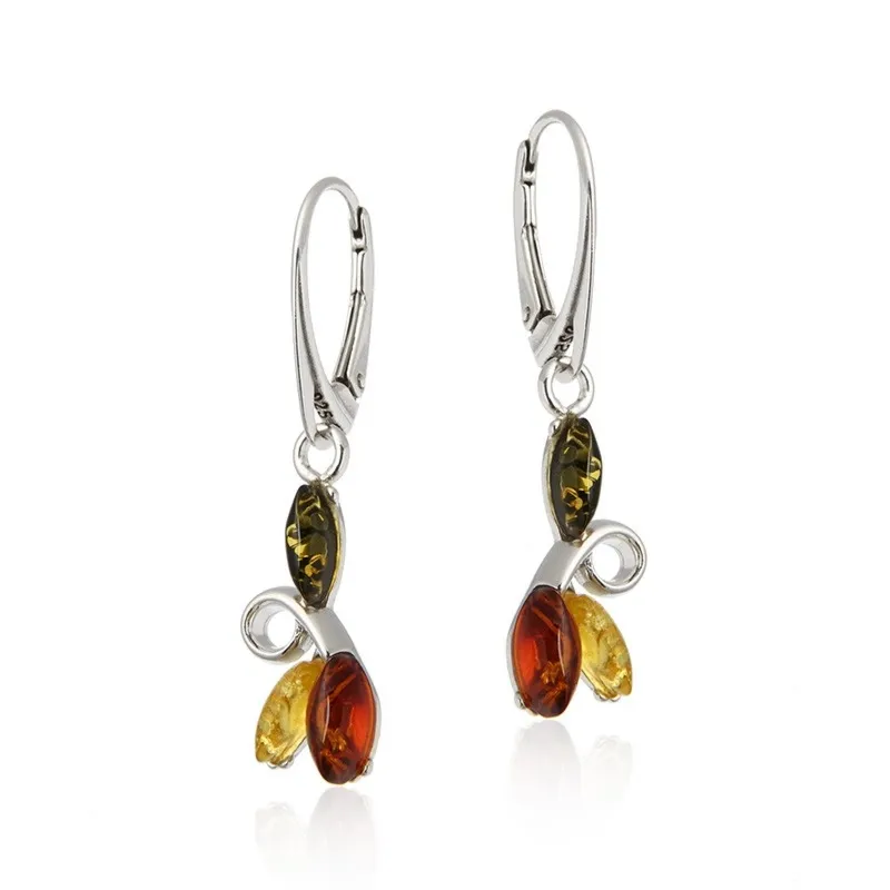 Kolczyki srebrne z kolorowym bursztynem na angielskim zapięciu