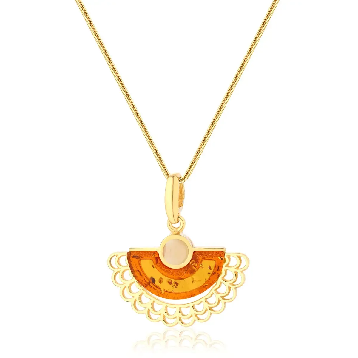 Naszyjnik srebrny pozłacany z koniakowym bursztynem Future