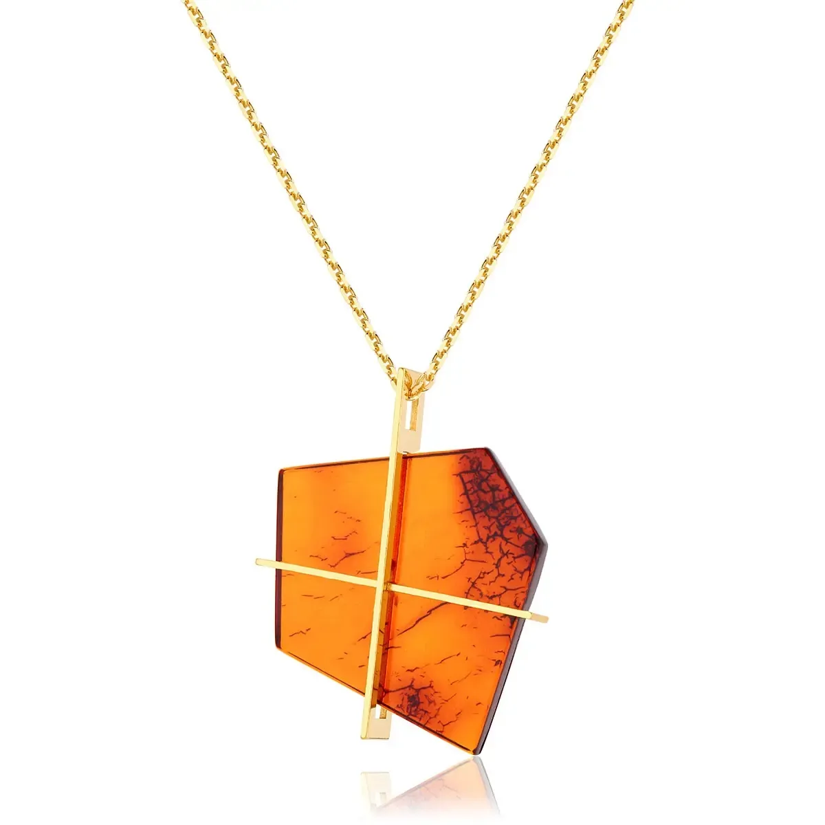 Naszyjnik srebrny pozłacany z koniakowym bursztynem Polygon NO 5