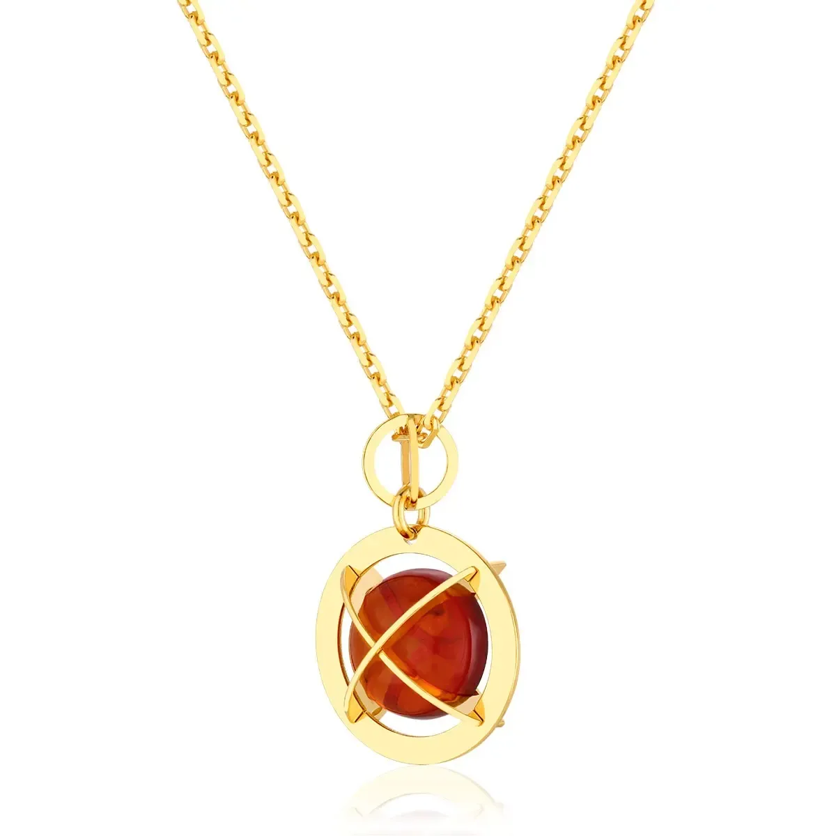 Naszyjnik srebrny pozłacany z koniakowym bursztynem Kopernicus