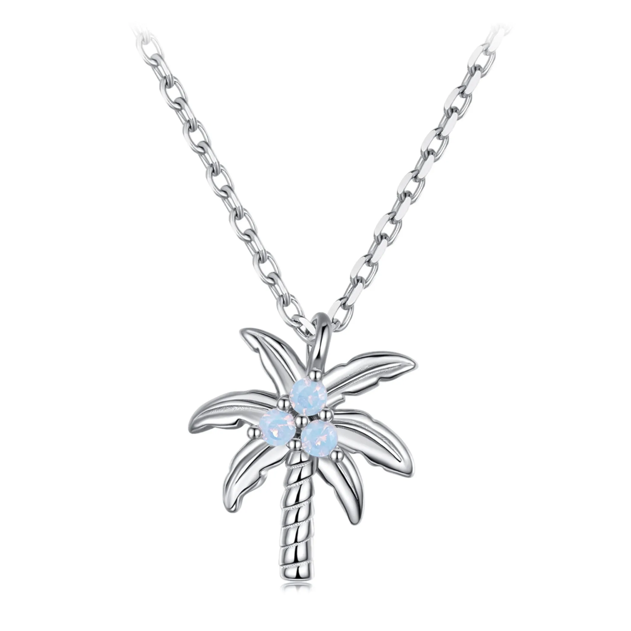 Srebrny naszyjnik z palmą i opalizującymi kokosami srebro 925