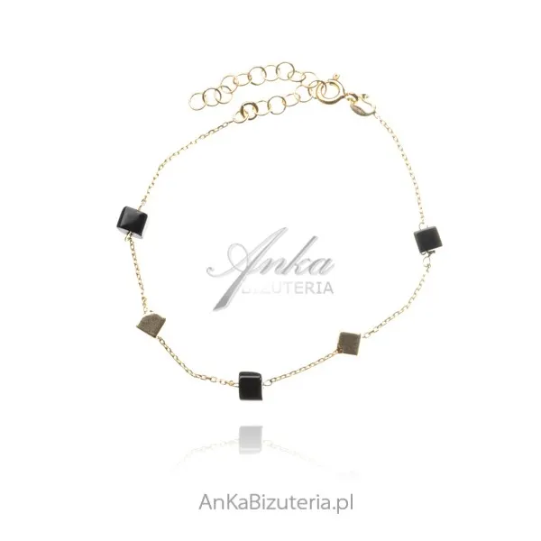 Bransoletka srebrna pozłacana z kosteczkami onyksowymi