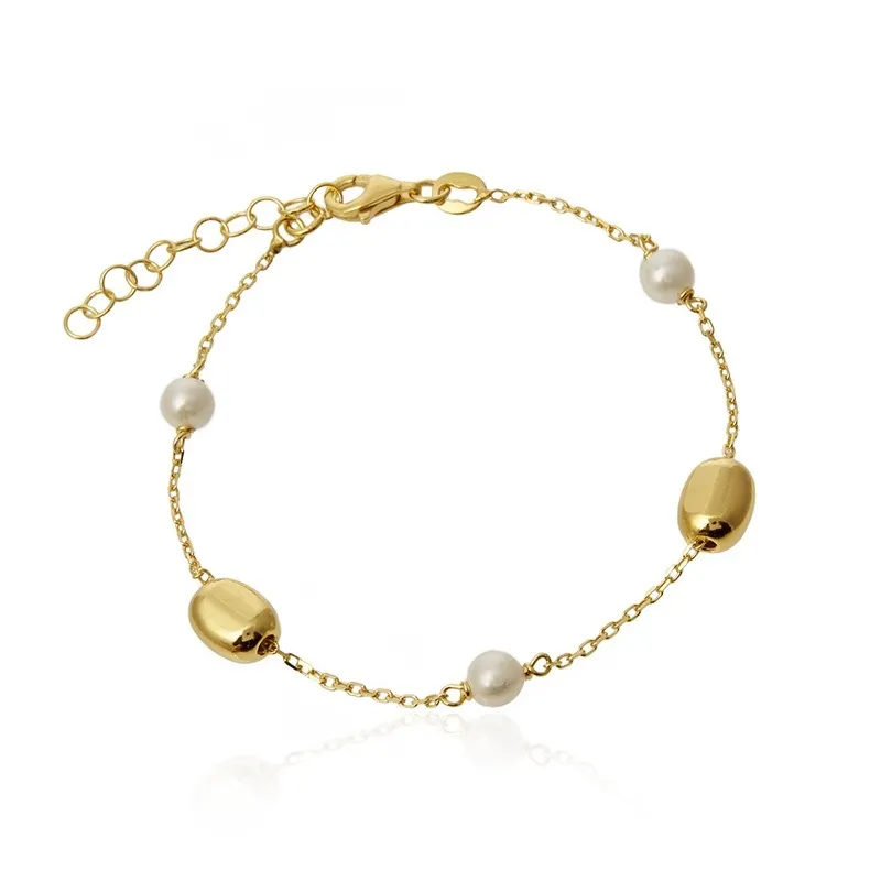 Bransoletka srebrna pozłacana z perełkami -minimalizm w złocie. kobiecość w perłach"