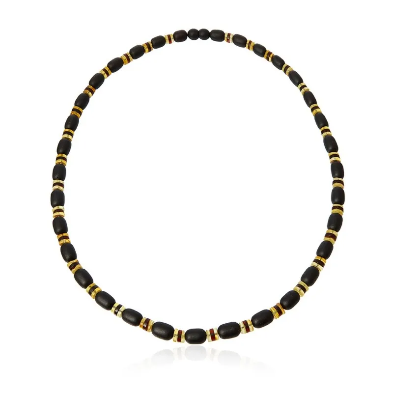 Naszyjnik męski z bursztynem owalne kółka z cytrynowym walcem