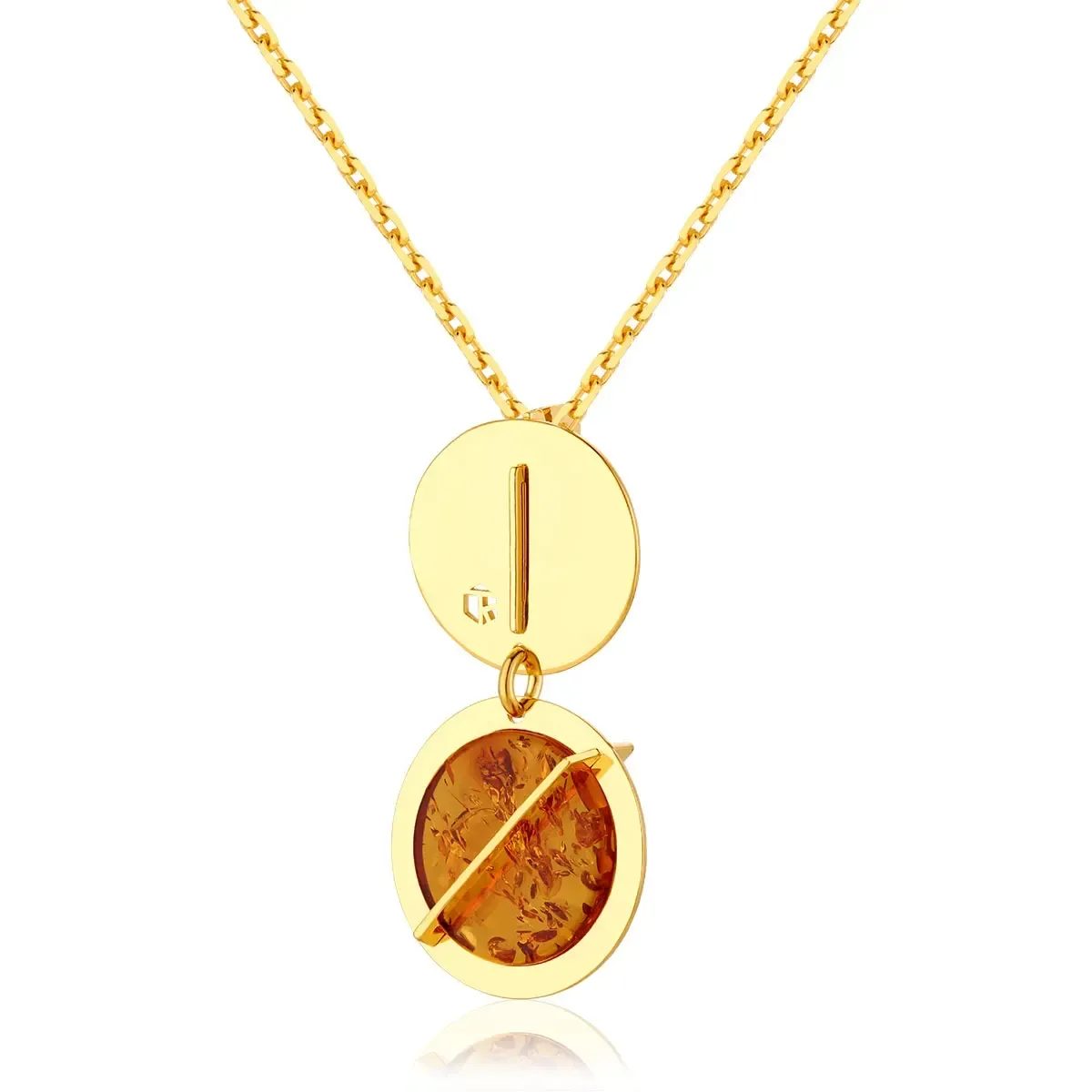 Naszyjnik srebrny pozłacany okrągły z koniakowym bursztynem Rondo