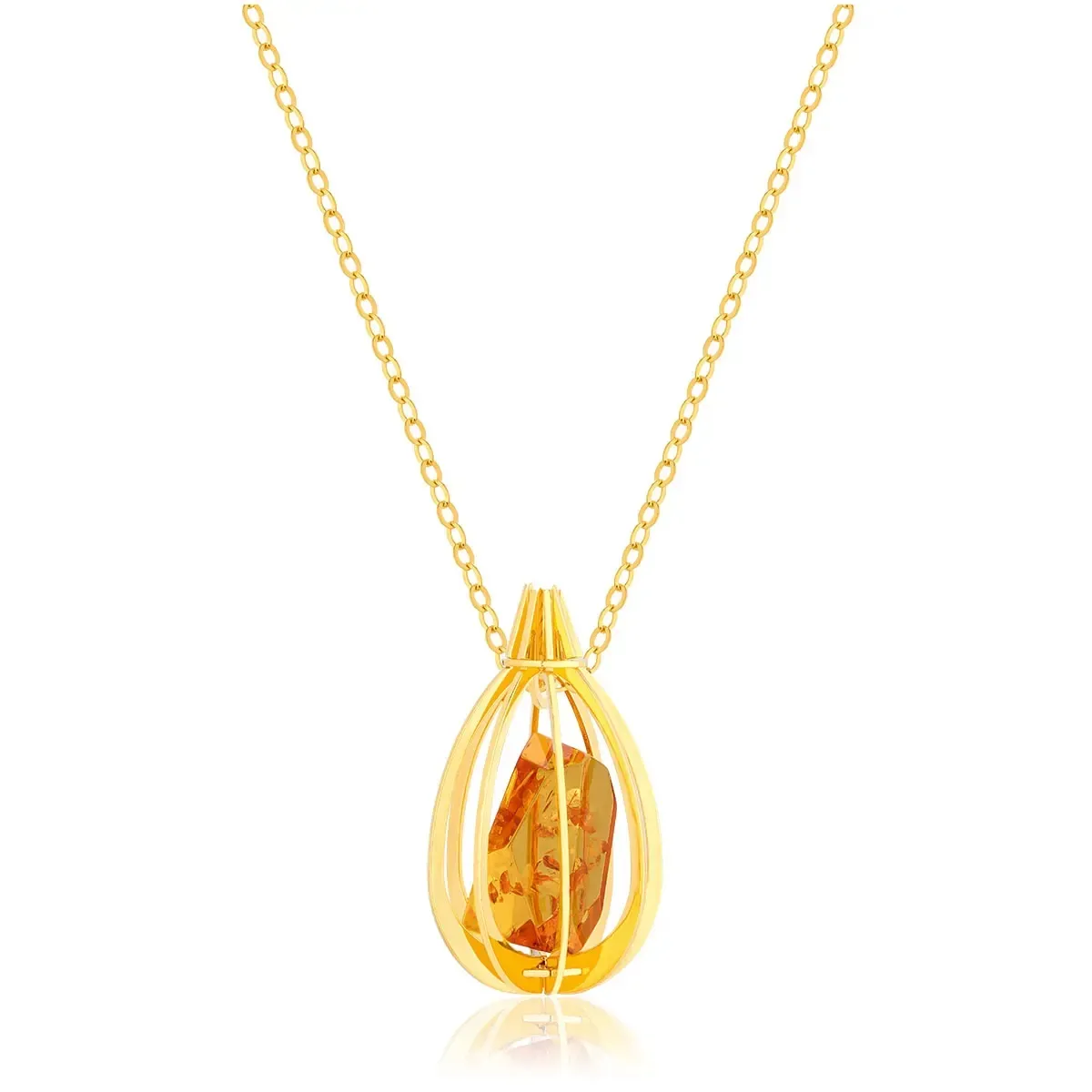 Naszyjnik srebrny pozłacany z cytrynowym bursztynem Blimp NO 2