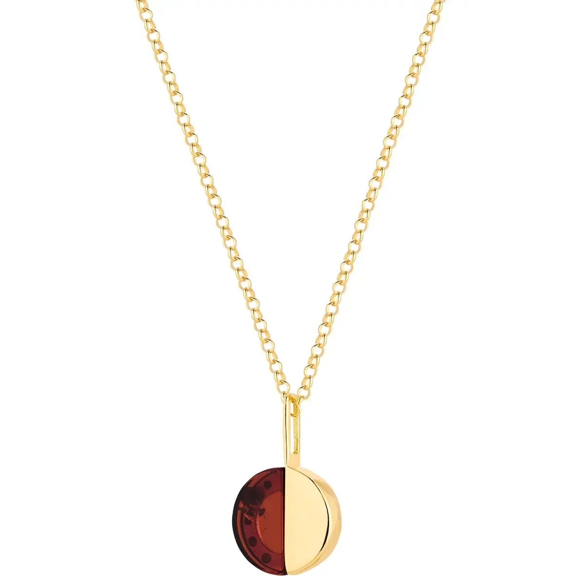 Naszyjnik srebrny pozłacany z wiśniowym bursztynem In half