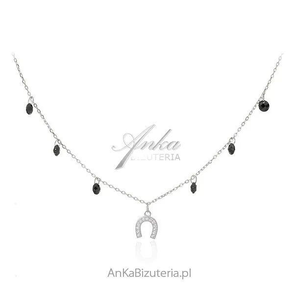 Naszyjnik srebrny z czarnymi cyrkoniami z podkówką