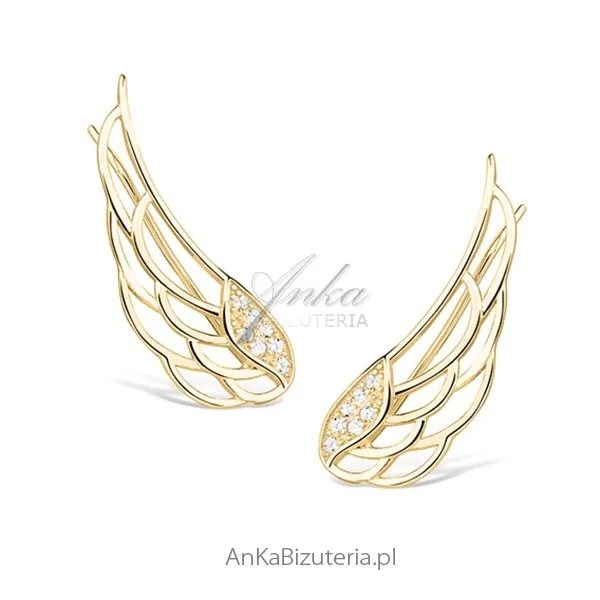 Kolczyki srebrne nausznice - srebrne pozłacane skrzydła anioła