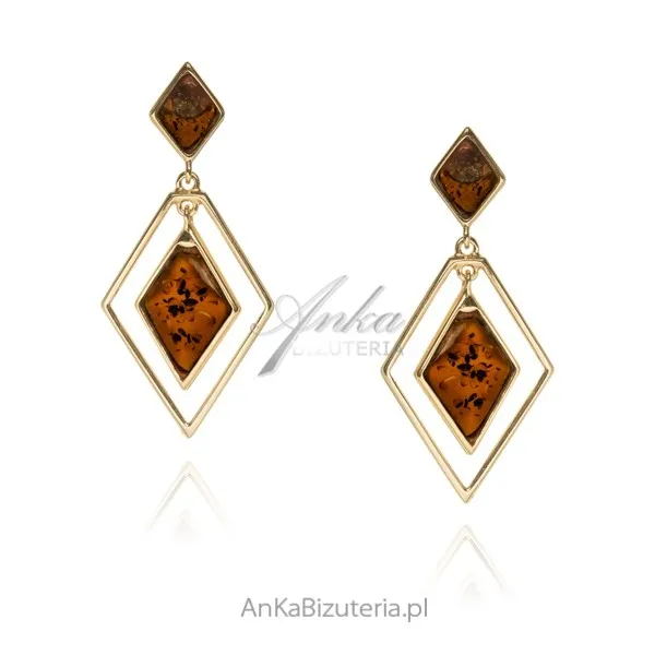 Piękne kolczyki srebrne pozłacane z bursztynem
