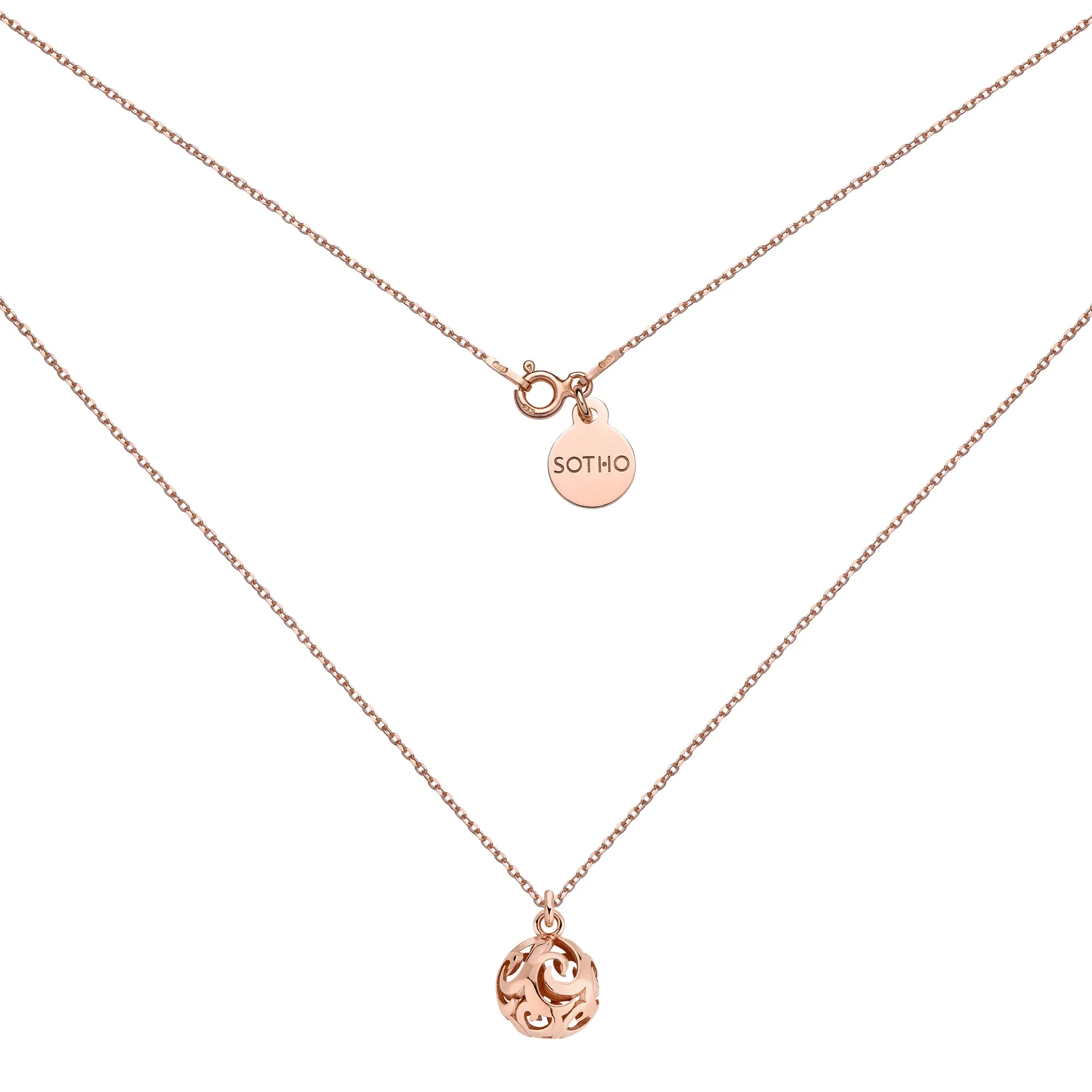 Złoty naszyjnik z kulą i zawieszką z logo marki. Całość wykonana ze srebra 925 powlekanego 24 karatowym różowym złotem. Długość naszyjnika do wyboru 38, 40, 45, 50, 60 lub 70 cm Grubość łańcuszka 1 mm Kula 10 mm Zawieszka z logo 10 mm Produkt o wadze poniżej 5 g. Zapakowany w eleganckie pudełeczko z logo marki. Posiada logowaną metkę. Istnieje możliwość zamówienia naszyjnika innej długości, z innym modelem zawieszki, z kilkoma zawieszkami, na innym modelu łańcuszka, w wersji ze srebra 925 lub srebra 925 powlekanego 24 karatowym żółtym złotem, z dodatkowymi kamieniami, perłami lub kryształami SWAROVSKI® CRYSTAL itp.