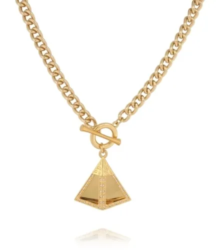 Długi naszyjnik z nietoperzem w kole. Naszyjnik pozłacany. Długość naszyjnika 82cm. Średnica koła 3,5cm.