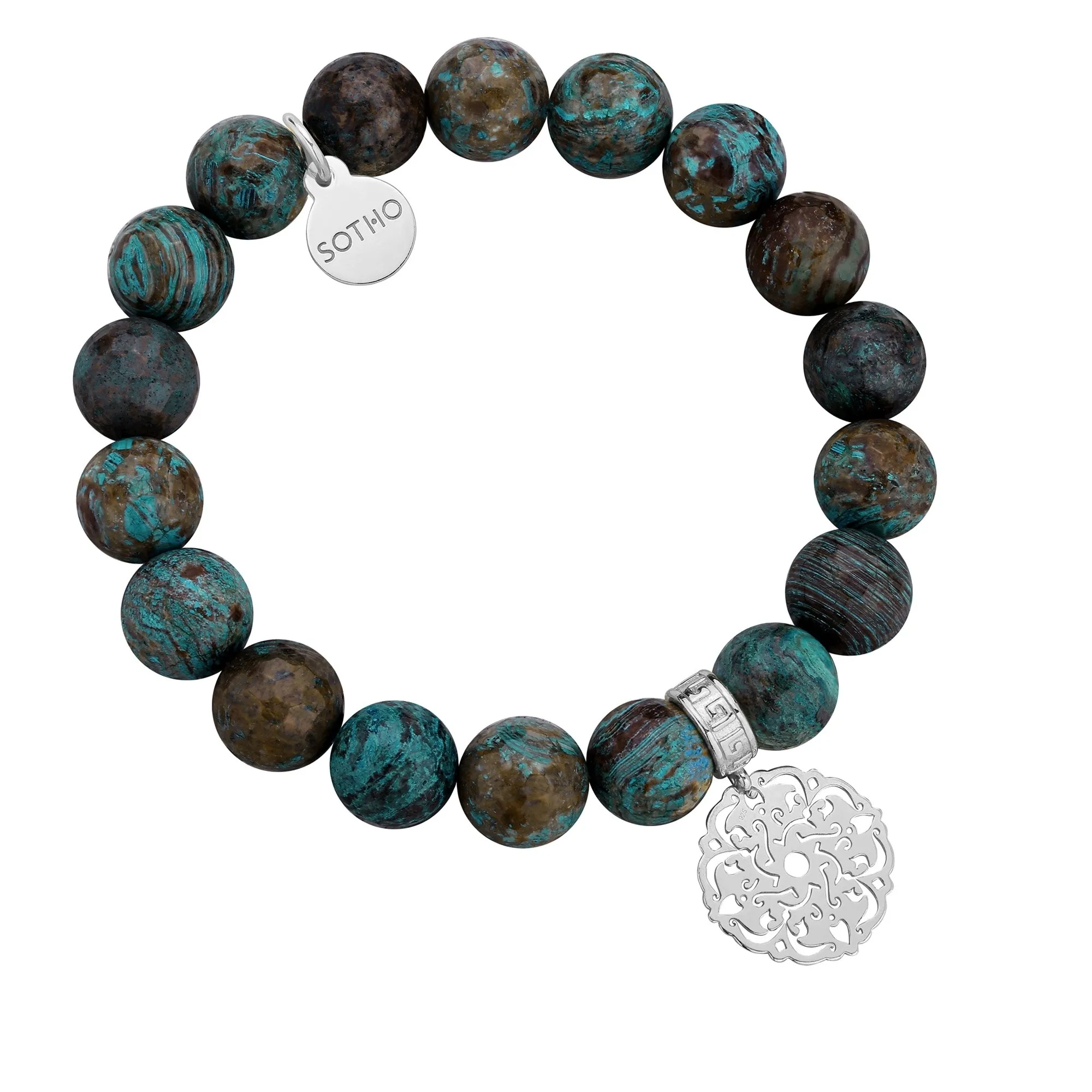 Bransoletka z fasetowanego jaspisu ze srebrną ażurową rozetką