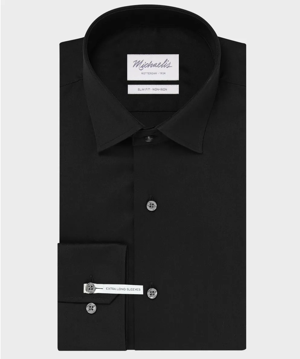Extra długa czarna koszula Michaelis z kołnierzem klasycznym 45