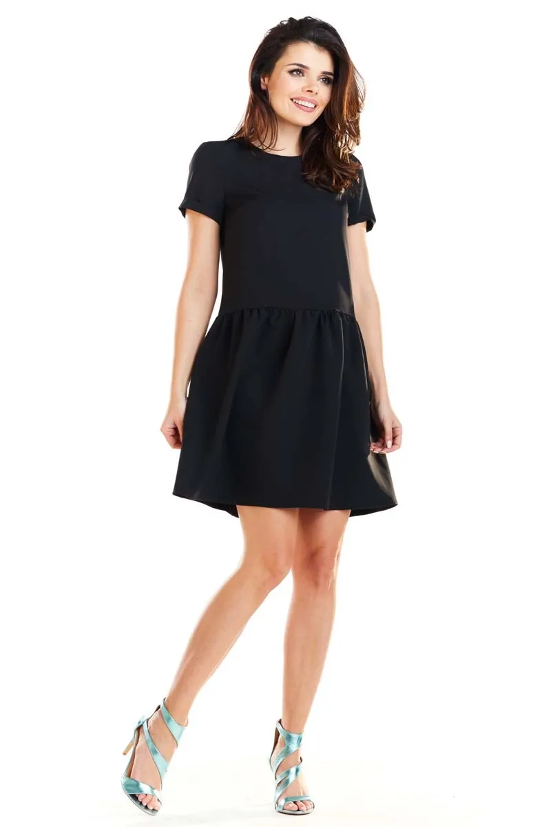 Czarna Letnia Sukienka z Marszczonym Dołem