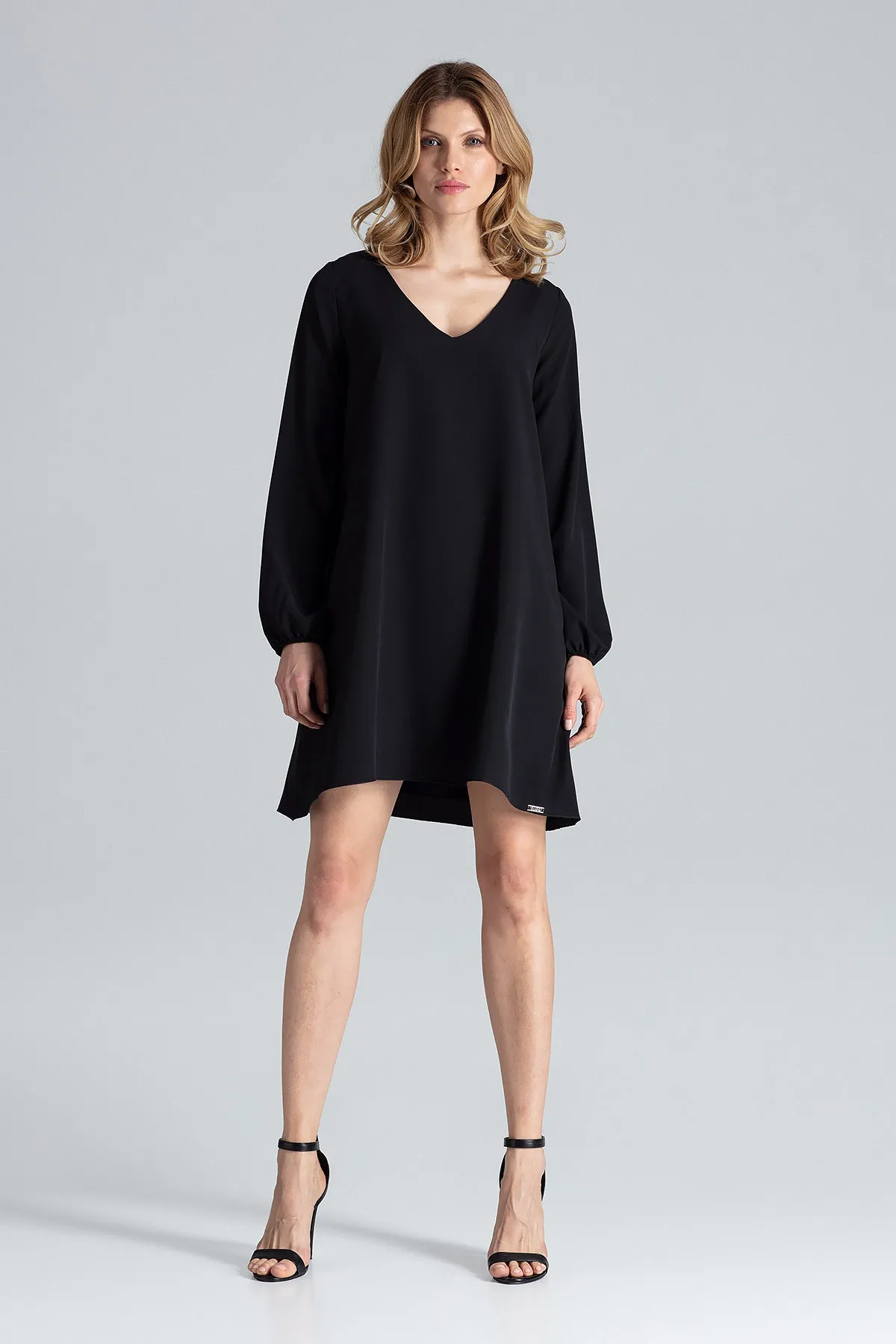 Sukienka Trapezowa z Długim Rękawem - Czarna