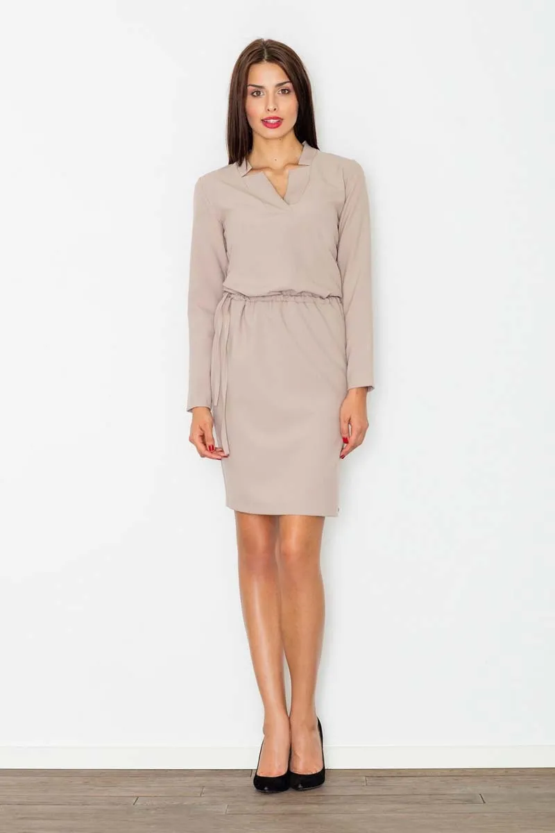 Beżowa Sukienka Codzienna z Paskiem w Tunelu