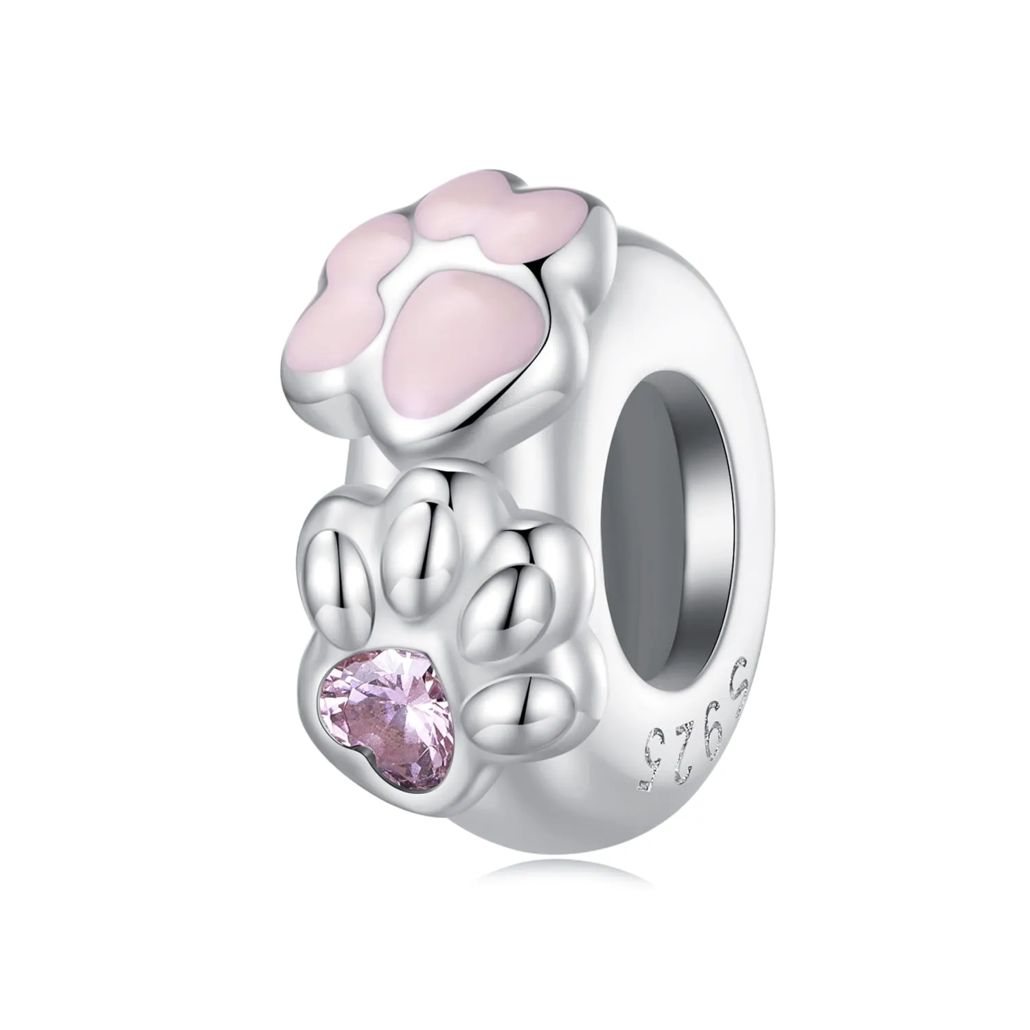 Stoper w różowe łapki charms do bransoletki srebro 925