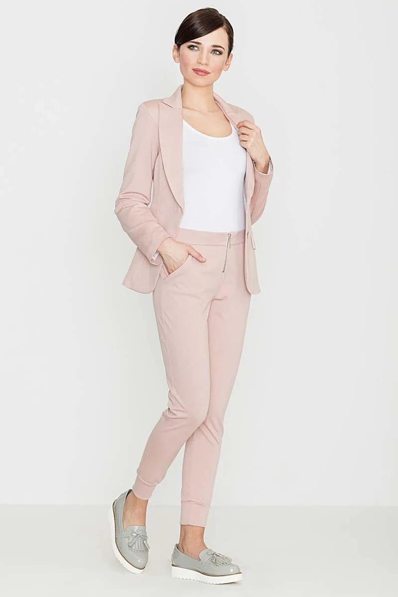Niebieskie Komfortowe Spodnie ze Złotym Suwakiem
