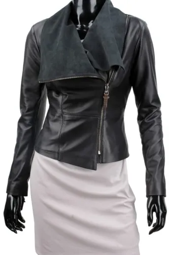 LEN450_1 - damska kurtka skórzana z zamszowym kołnierzem DORJAN