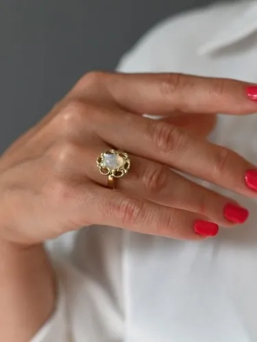 Retro pierścionek pozłacany z kamieniem księżycowym - Venus Galeria