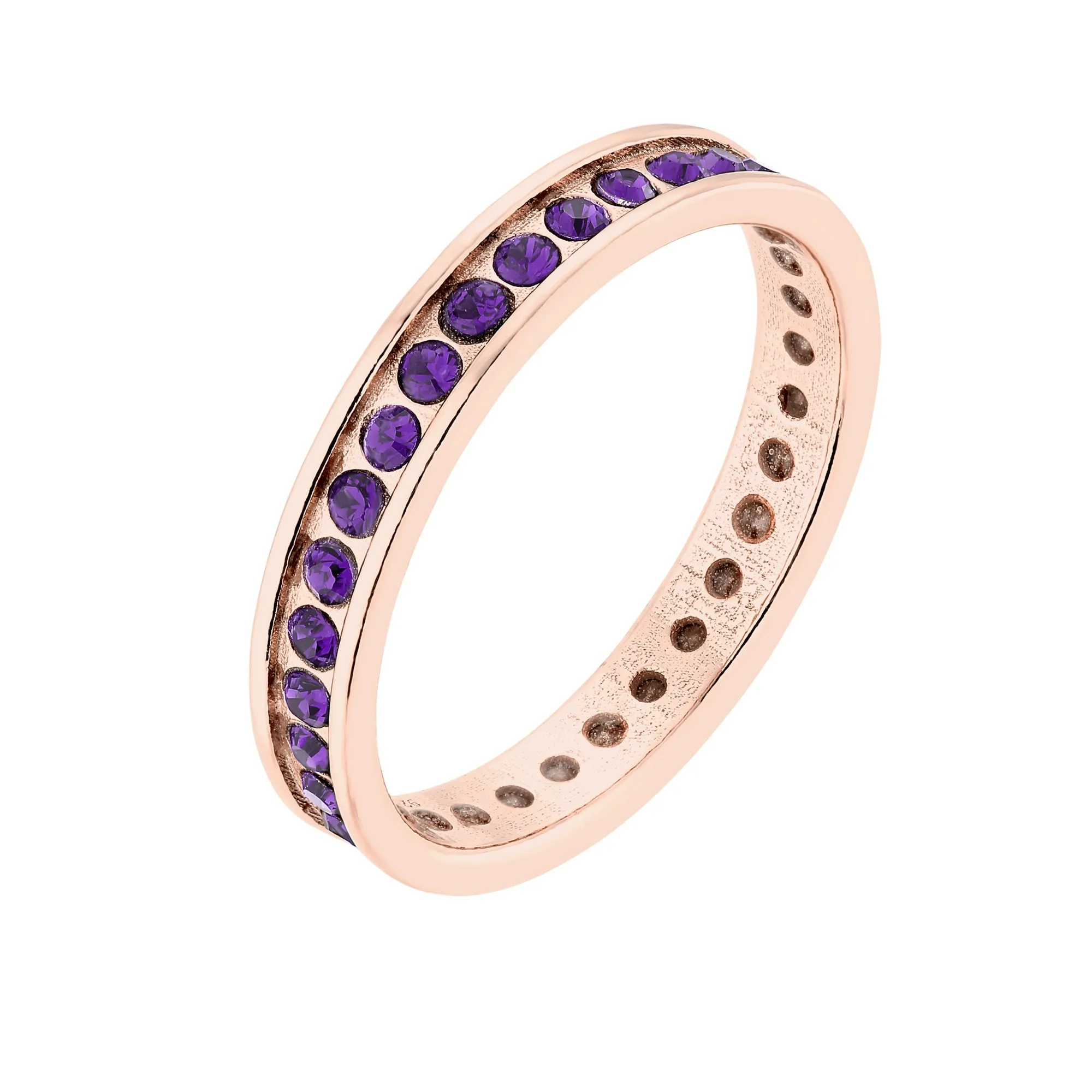 Obrączka z różowego złota z fioletowymi kryształami Preciosa : pierścionki - 12