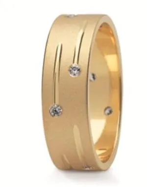 W damskiej obrączce oprawione standardowo cyrkonie w zależności od rozmiaru od 24 do 38 sztuk