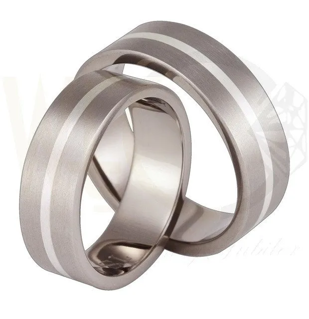 Obrączki ślubne z tytanu i paskiem srebra (para) SWTS-42/7