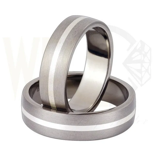 Obrączki ślubne z tytanu i paskiem srebra (para) SWTS-44/6