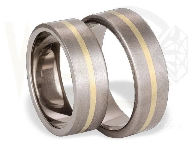 Obrączki ślubne z tytanu i paskiem żółtego złota (para) SWTG-42/7