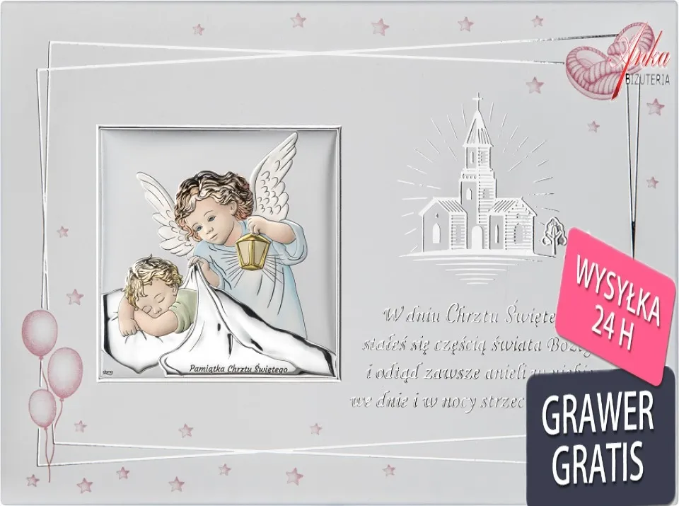 Obrazek srebrny na panelu pamiątka chrztu świętego dla dziewczynki