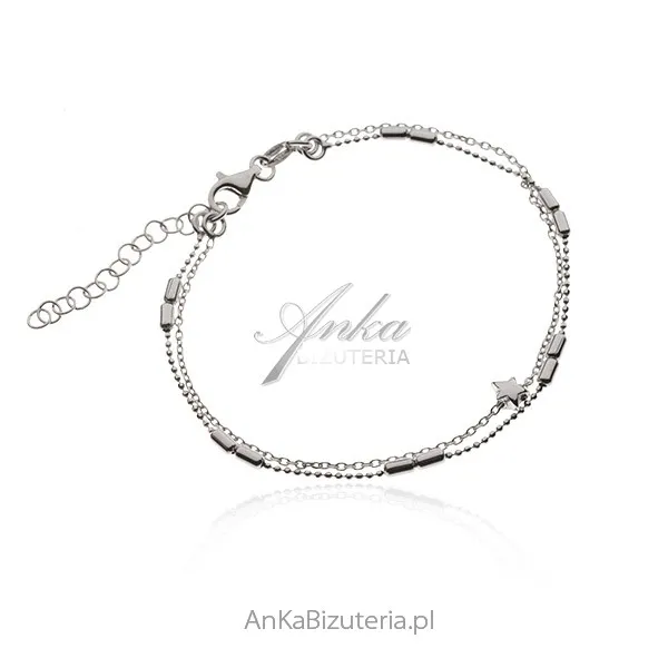 Srebrna bransoletka podwójna z pałeczkami i gwiazdką