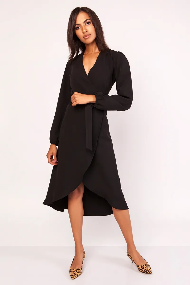 Ołówkowa Czarna Sukienka na Cienkich Ramiączkach