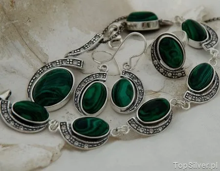 RIPOLI - srebrny komplet z malachitami i cyrkoniam