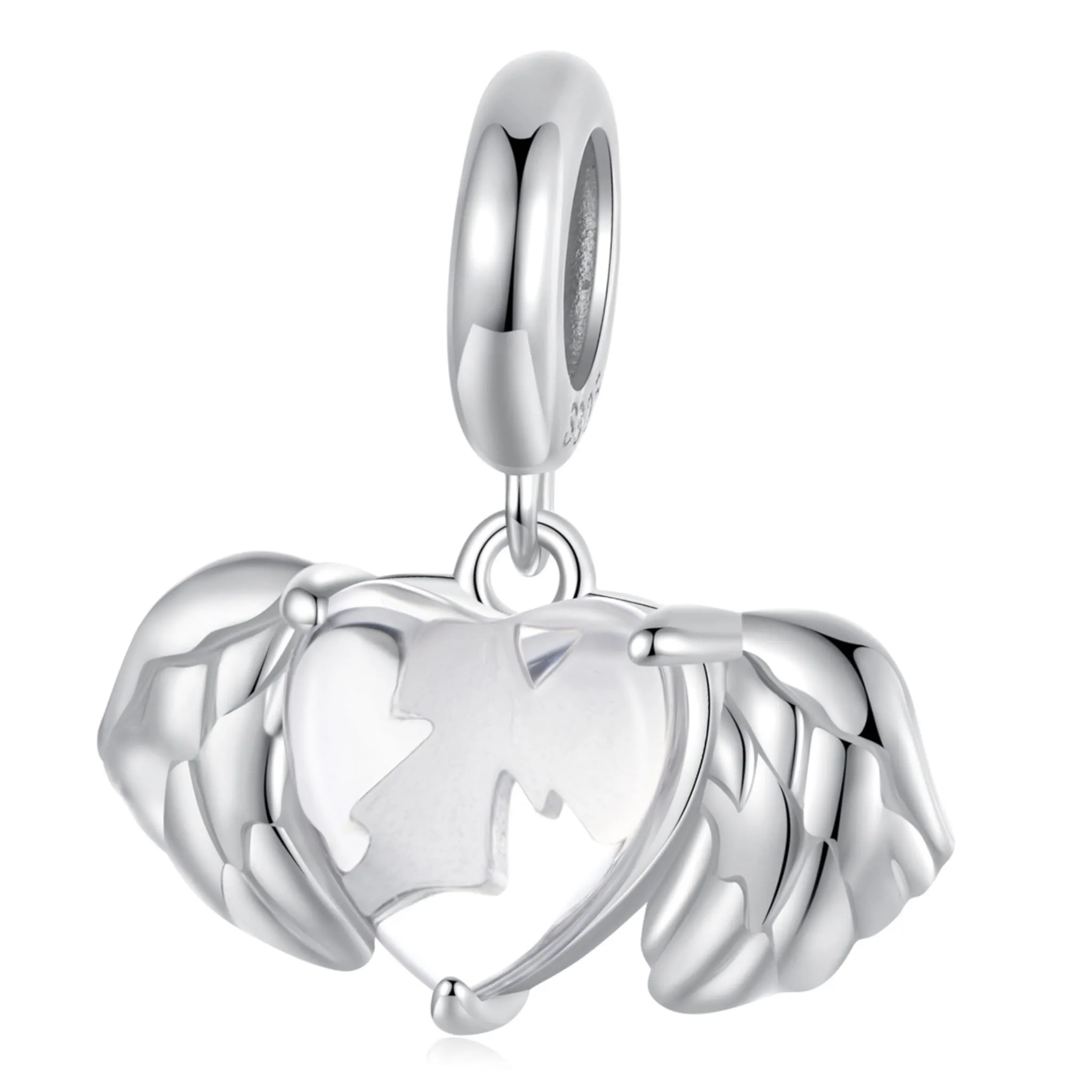 Srebrna zawieszka serce z anielskimi skrzydłami srebro 925 beads koralik